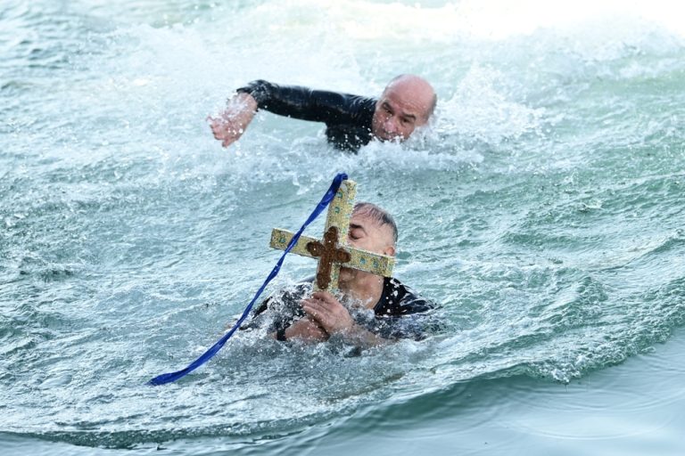 Με λαμπρότητα πραγματοποιήθηκε ο Καθαγιασμός των Υδάτων και η Κατάδυση του Τιμίου Σταυρού για την εορτή των Θεοφανίων στον Πειραιά.