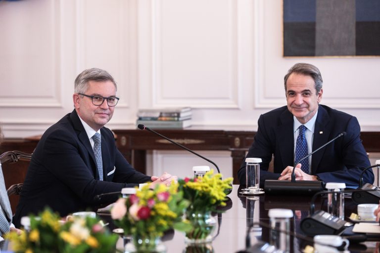 Με τον Επίτροπο Εσωτερικών Υποθέσεων και Μετανάστευσης της Ευρωπαϊκής Ένωσης Μάγκνους Μπρίνερ συναντήθηκε στο Μέγαρο Μαξίμου, ο πρωθυπουργός Κυριάκος Μητσοτάκης.