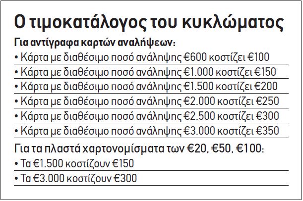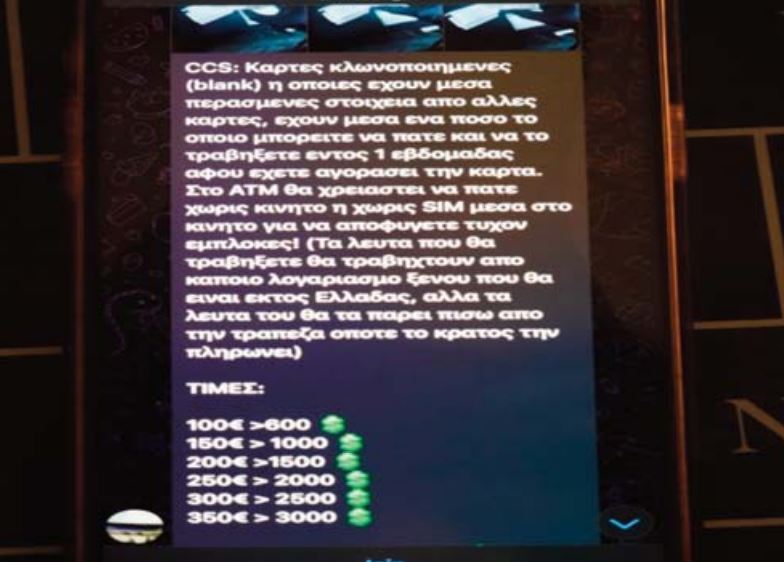 Ο επικεφαλής της ομάδας, ο οποίος χρησιμοποιεί το ψευδώνυμο «Verse», αναφέρει για τις κλωνοποιημένες κάρτες (CCS): «Έχουν μέσα περασμένα στοιχεία από άλλες κάρτες, έχουν μέσα ένα ποσό το οποίο μπορείτε να τραβήξετε εντός 1 εβδομάδας αφού έχετε αγοράσει την κάρτα. Στο ATM θα χρειαστεί να πάτε χωρίς κινητό ή χωρίς SIM μέσα στο κινητό για να αποφύγετε τυχόν εμπλοκές! Τα λεφτά που θα τραβήξετε θα τραβηχτούν από κάποιο λογαριασμό ξένου που θα είναι εκτός Ελλάδας, αλλά τα λεφτά του θα τα πάρει πίσω από την τράπεζα, οπότε το κράτος την πληρώνει».