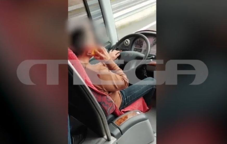 Με το κινητό στα χέρια, οδηγεί στην αριστερή λωρίδα, πηγαίνοντας με 100 χλμ την ώρα. Στα πλάνα φαίνεται πώς το λεωφορείο φτάνει μια ανάσα από τη διαχωριστική.
