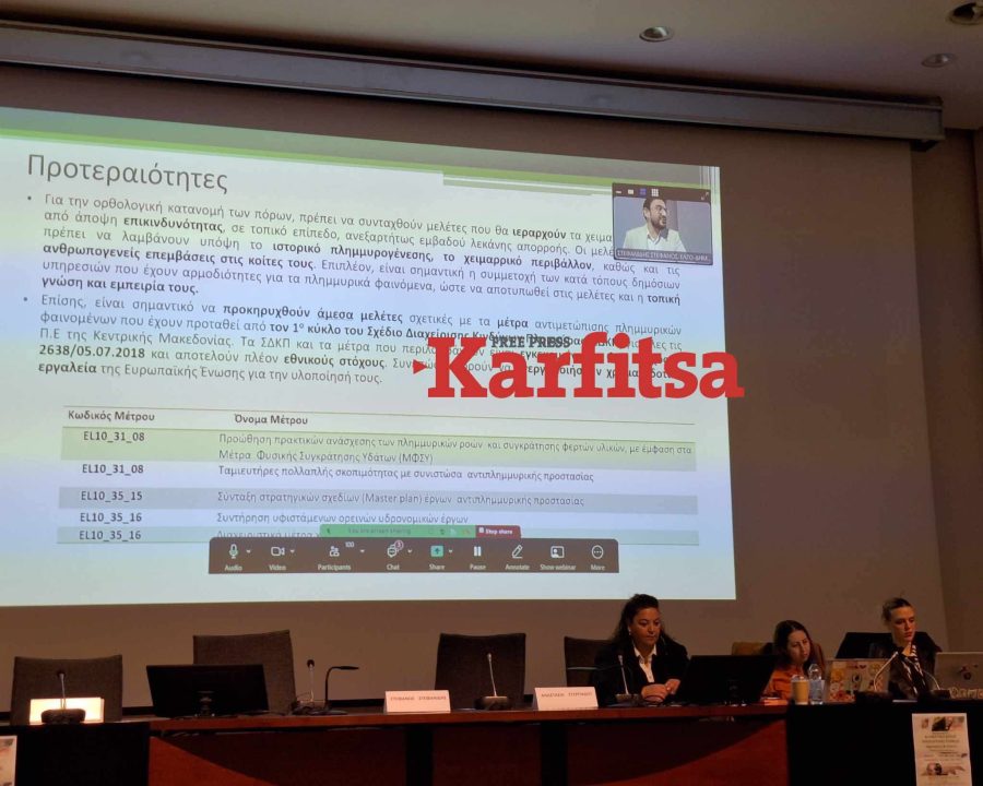 Σε ερώτηση της Karfitsa σχετικά με τον τρόπο πρόληψης των πλημμυρικών φαινομένων εντός της Θεσσαλονίκης, όπου βλέπουμε σε περιπτώσεις ακόμη και σύντομης βροχόπτωσης, να πλημμυρίζουν κάποια σημεία, ο κ. Στεφανίδης απάντησε πως «θα πρέπει να διευθετήσουμε τη λεκάνη “από την κορυφή ως τα νύχια”. Απαιτείται ολιστική προσέγγιση. Να ξεκινήσουμε από πάνω. Αυτό θα πρέπει να γίνει συνείδηση και να το καταλάβουμε. Η στρατηγική που έχει εφαρμοστεί, έχει αποτύχει».