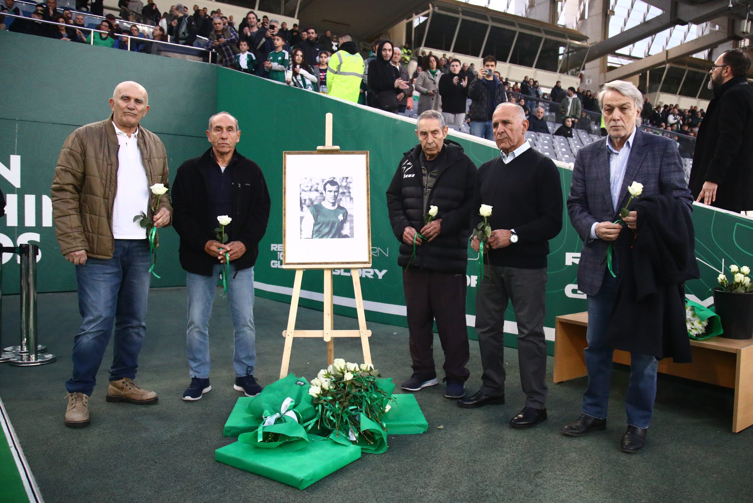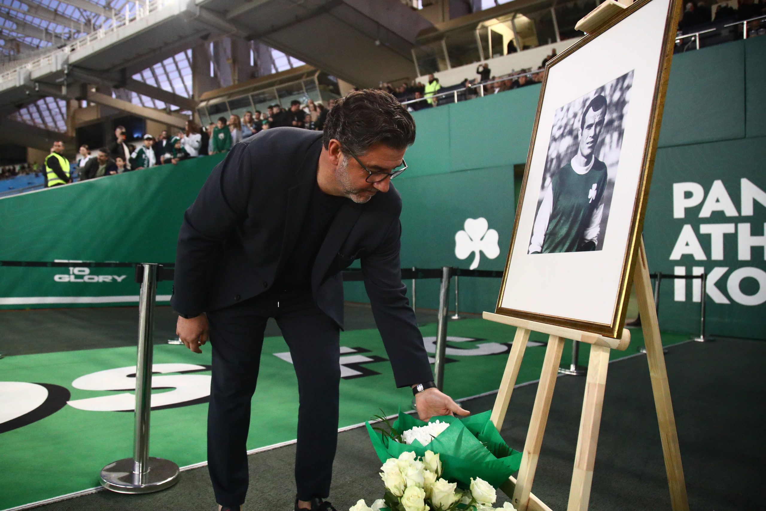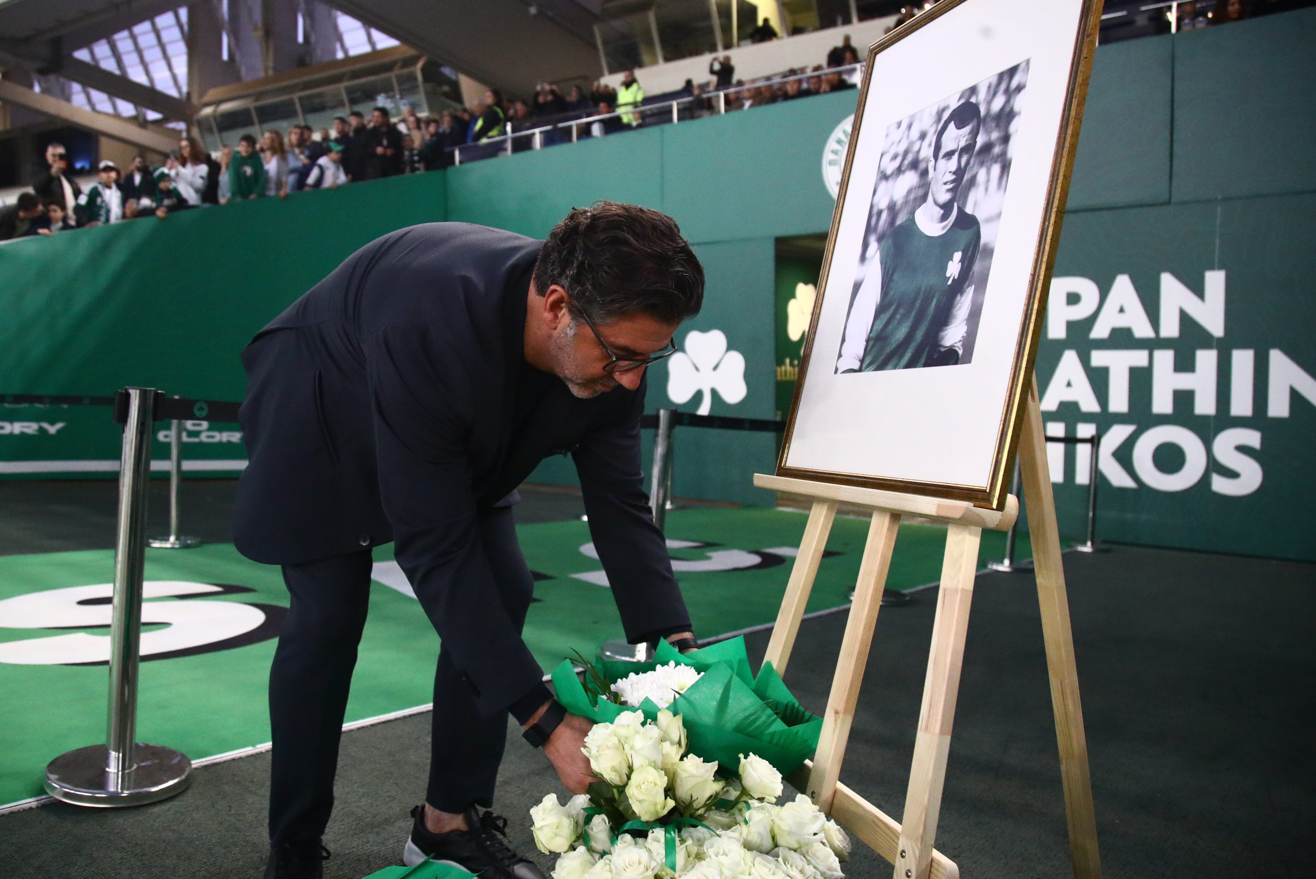 Την ίδια ώρα οι χιλιάδες φίλοι του Παναθηναϊκού σήκωσαν πράσινα χαρτόνια που είχαν γραμμένα τον αριθμό 10 προς τιμήν του «Στρατηγού», ενώ οι παίκτες των «πράσινων» όταν μπήκαν για ην επίσημη είσοδό τους στο γήπεδο, φορούσαν φανέλες της ομάδας του Γουέμπλεϊ με το 10 στην πλάτη.