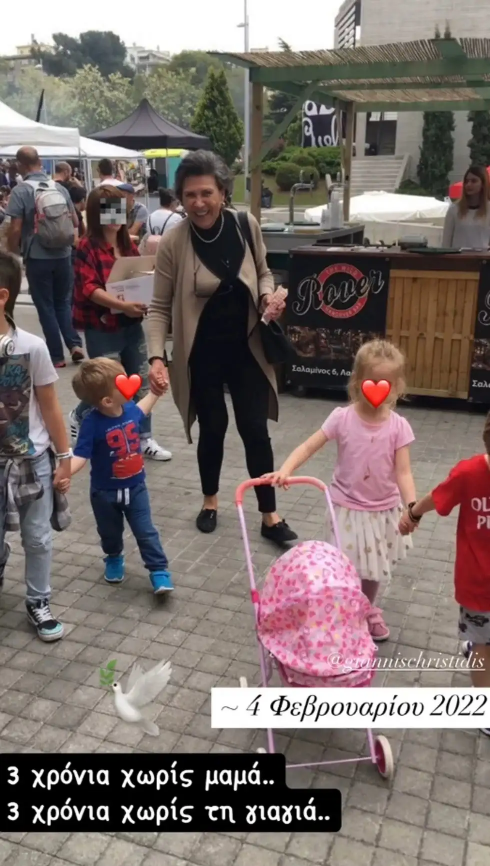 Σήμερα, η παρουσιάστρια ανέβασε μια φωτογραφία στα stories της στο Instagram, στην οποία η ευτυχισμένη γιαγιά, κάνει βόλτα με τα εγγόνια της.