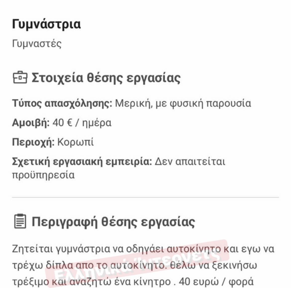 Ο κόσμος είναι περίειργος και αυτό φαίνεται καθημερινά, εδώ όμως έχουμε την καλύτερη θέση εργασίας, όπου σχεδόν ζηλέψαμε που δεν ασχολούμαστε με τον κλάδο της γυμναστικής. Συγκεκριμένα, η θέση εργασίας ζητάει γυμνάστρια, η οποία θα πρέπει να ξέρει να οδηγεί, ώστε να δίνει κίνητρο σε αυτόν που προπονείται να τρέχει δίπλα στο αυτοκίνητο.