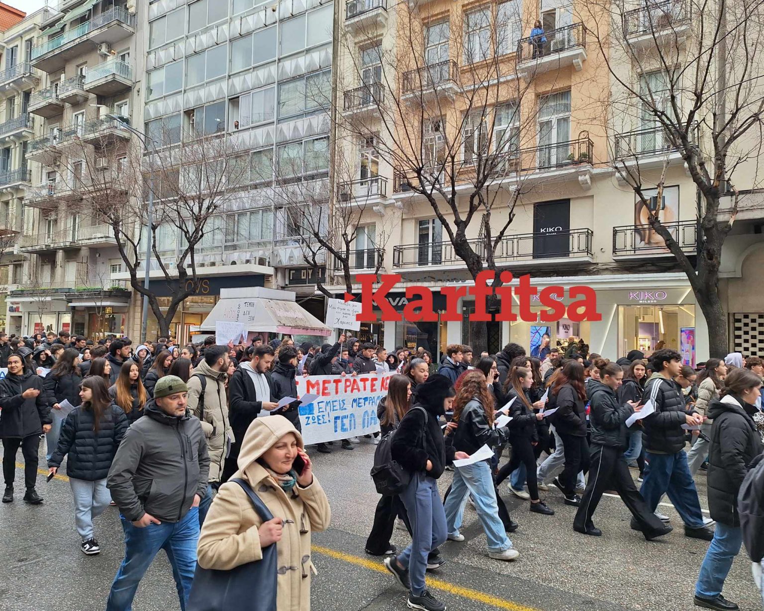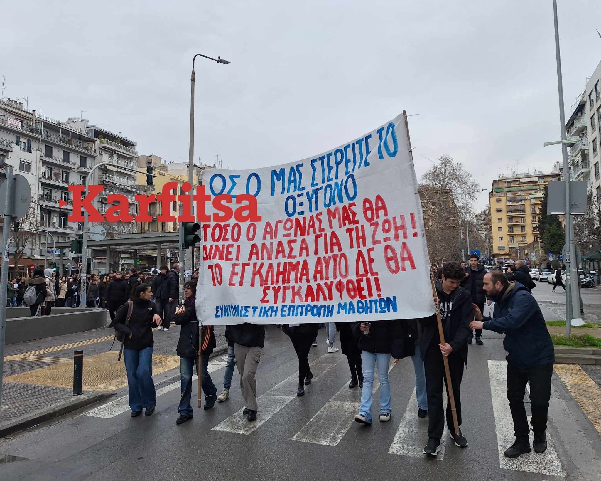 Φοιτητές και μαθητές πραγματοποιούν στο κέντρο της Θεσσαλονίκης μεγάλη πορεία για το σιδηροδρομικό δυστύχημα των Τεμπών με συνθήματα όπως «Το έγκλημα δεν θα συγκαλυφθεί» και «Τα δάκρυα έγιναν οργή».