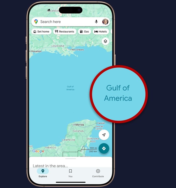 Πλέον το Google Maps αναφέρει ως «κόλπο της Αμερικής» τον κόλπο που βρίσκεται στις νοτιοανατολικές ΗΠΑ, στη θάλασσα μεταξύ της Φλόριντα, της Λουιζιάνα, του Τέξας, του Μεξικού και της Κούβας, όμως μόνο για τους χρήστες του που βρίσκονται στις ΗΠΑ. Οι χρήστες που βρίσκονται στο Μεξικό εξακολουθούν να βλέπουν το όνομα «κόλπος του Μεξικού», όπως το επιθυμεί η μεξικανική κυβέρνηση.Εξάλλου όσοι χρήστες βρίσκονται σε άλλες χώρες βλέπουν δύο ονόματα: «κόλπος του Μεξικού (κόλπος της Αμερικής)», μια τακτική που ακολουθεί το Google Maps για διαφιλονικούμενες περιοχές.