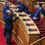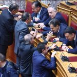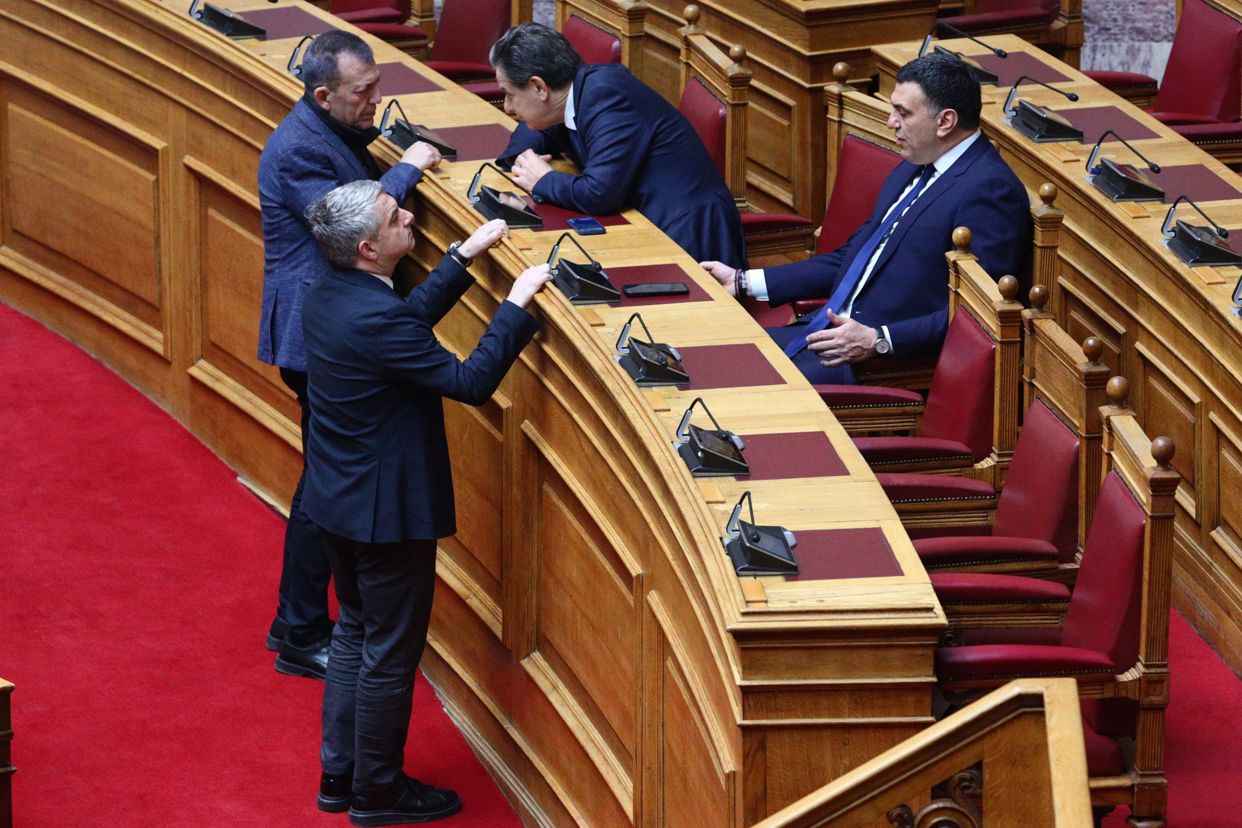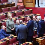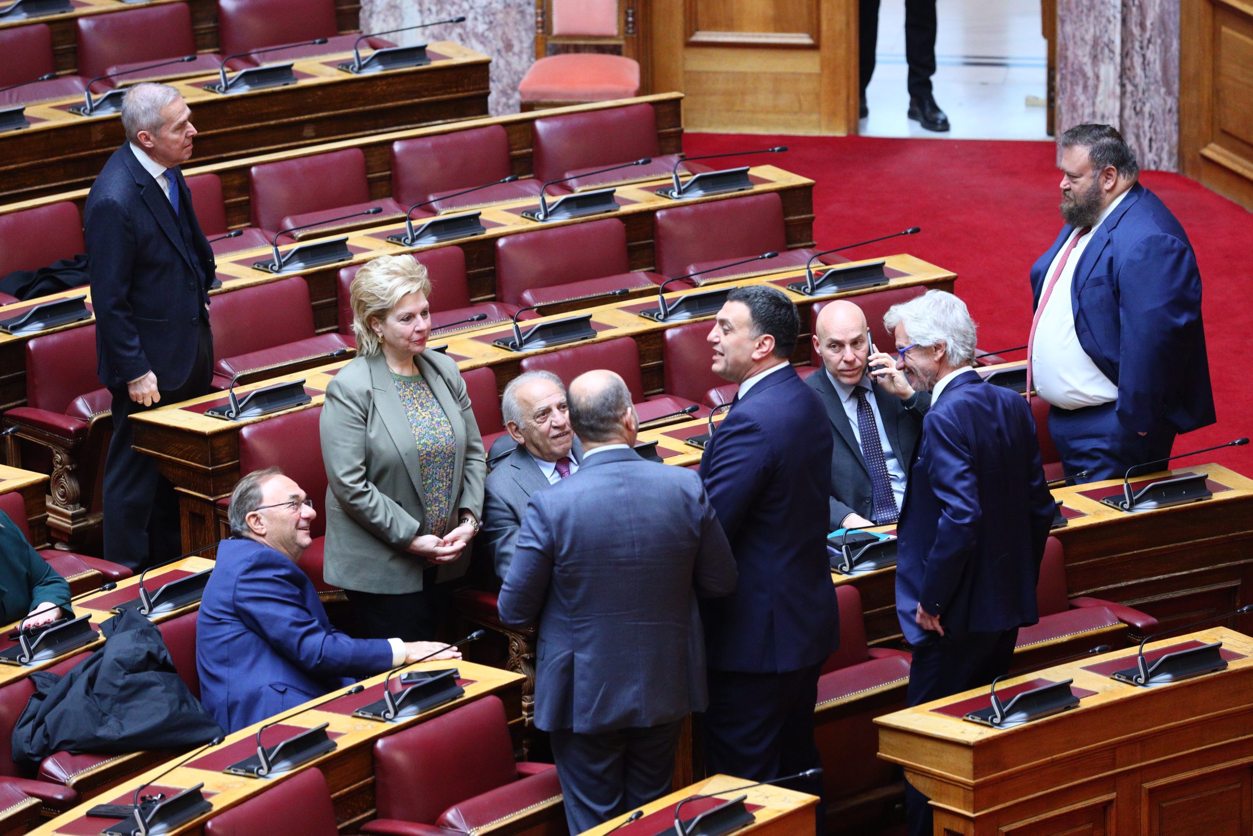 Στο Κοινοβούλιο και την αίθουσα της Ολομέλειας οι βουλευτές ξεκίνησαν να καταφθάνουν πριν από τις 10:00 το πρωί και, όπως συνηθίζεται, σχηματίστηκαν πηγαδάκια ανάμεσα σε υπουργούς και βουλευτές.