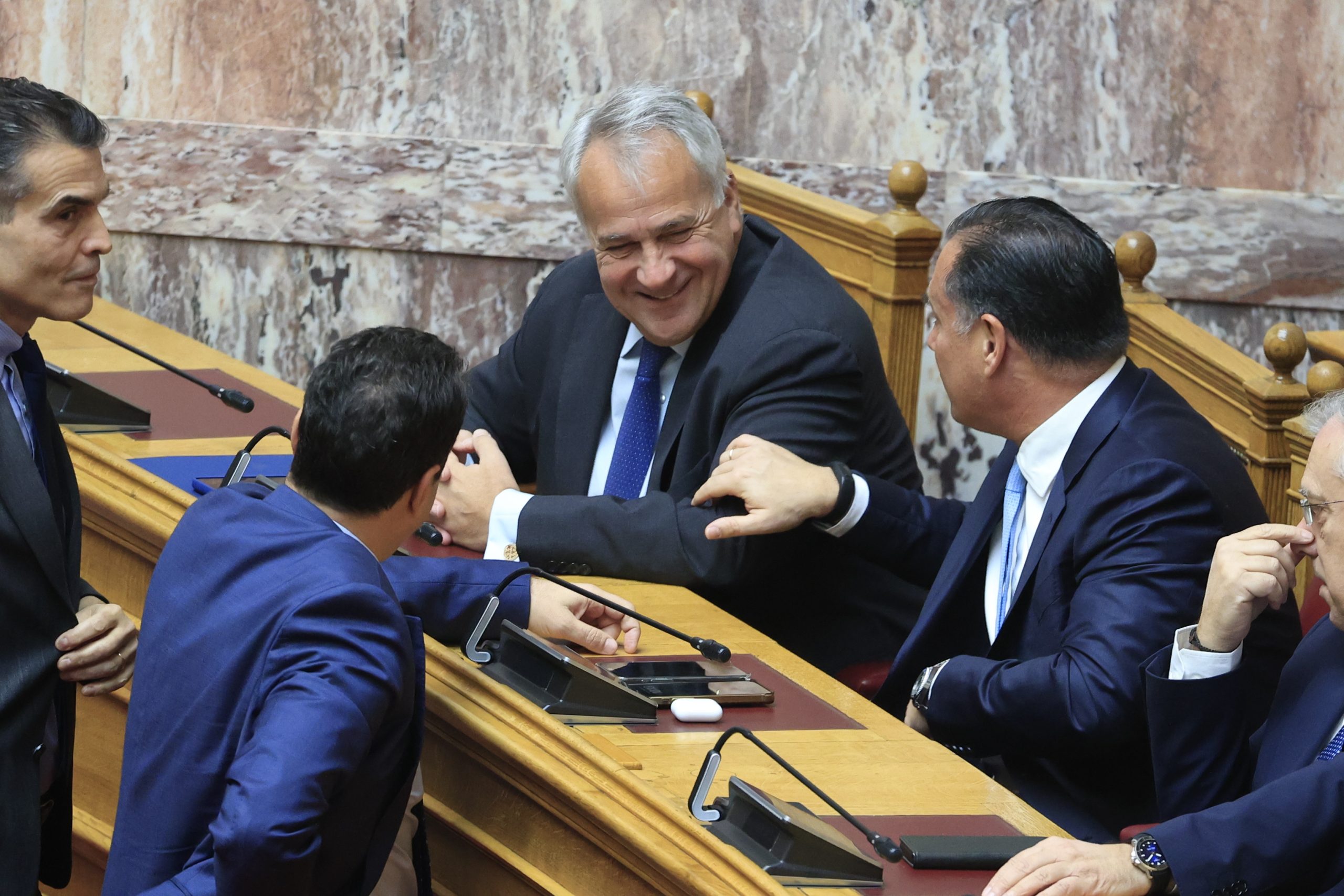 Στα έδρανα της ΝΔ η ικανοποίηση ήταν εμφανής, καθώς σήμερα θα ολοκληρωνόταν η διαδικασία με την εκλογή του Κώστα Τασούλα.