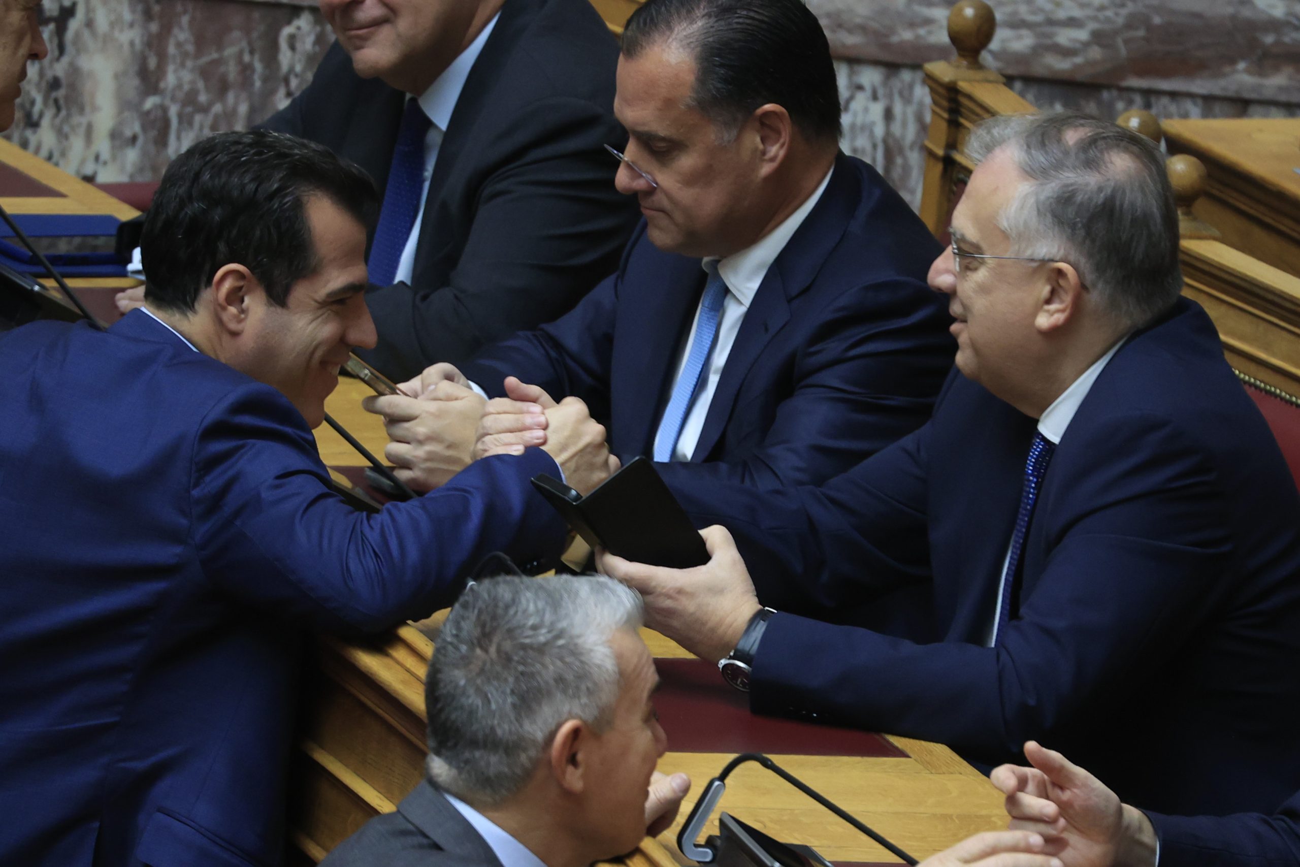 Πριν από τη διαδικασία υπήρξαν χαμόγελα και συζητήσεις ανάμεσα σε υπουργούς και γαλάζιους βουλευτές. Μετά την ολοκλήρωση της διαδικασίας και στο άκουσμα του αποτελέσματος οι βουλευτές του κυβερνώντος κόμματος όρθιοι χειροκροτούσαν τον Κώστα Τασούλα.