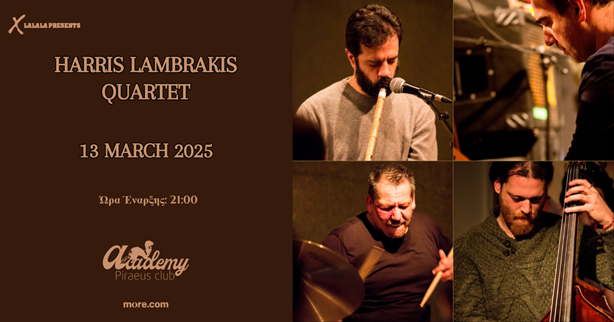 Το Harris Lambrakis Quartet δημιουργήθηκε το 2006 στην Αθήνα και από τότε παρουσιάζει αποκλειστικά την πρωτότυπη μουσική που συνθέτουν τα μέλη του. Τα τελευταία 19 χρόνια, με τον Νίκο Σιδηροκαστρίτη στα τύμπανα, τον Δημήτρη Θεοχάρη στο πιάνο, τον Χάρη Λαμπράκη στο νέυ και τον Δημήτρη Τσεκούρα στο κοντραμπάσο ως μέλη, το σχήμα εμβαθύνει στη σχέση του με το κοινό του καθώς διερευνά τα μουσικά τοπία της Ανατολής και της Δύσης. Η τροπική (modal) τζαζ, η ελληνική παραδοσιακή μουσική, οι τροπικές μουσικές της Ανατολικής Μεσογείου συναντώνται και μπλέκονται αρμονικά με τις τζαζ αρμονίες της δεκαετίας του 1960 και την αυτοσχεδιαστική μουσική στον ήχο του σχήματος. Το αποτέλεσμα, είναι ένα μουσικό ταξίδι όπου οι ακροατές μαζί με τους μουσικούς, έρχονται αντιμέτωποι με το απρόσμενο, που δεν μπορούν να το ορίσουν παρά μόνον όλοι μαζί να το ακολουθήσουν.