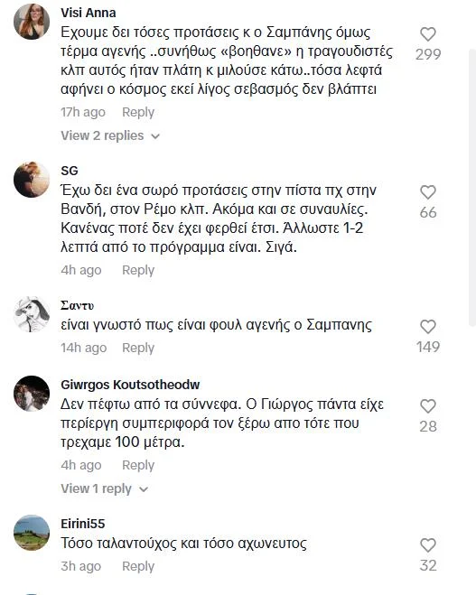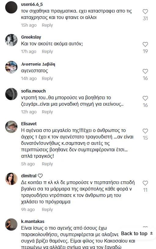 Τα σχόλια κάτω από το βίντεο κατακρίνουν τη συμπεριφορά του καλλιτέχνη, τονίζοντας πόσο αγενής είναι. Κάποιος σημείωσε μάλιστα, πως συνήθως σε τέτοιες περιπτώσεις, ο τραγουδιστής φροντίζει να βοηθήσει τον άλλο και όχι να τον αγχώσει.