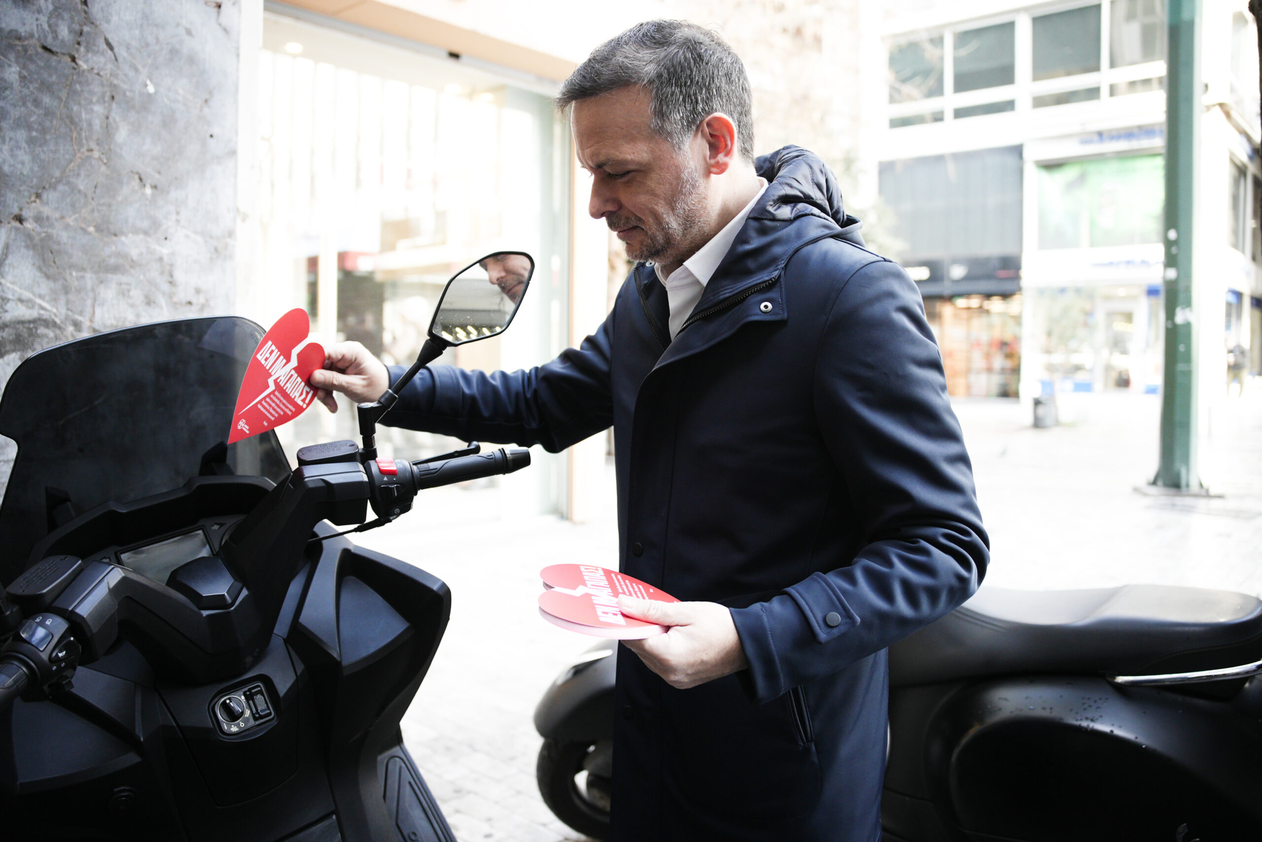 «Αγάπη δεν είναι μόνοι οι σοκολάτες και τα λουλούδια. Είναι και να νοιάζεσαι τον συνάνθρωπό σου. Να δίνεις χώρο στην πόλη να κινηθούν όσοι δυσκολεύονται. Άνθρωποι σε αμαξίδια και πατερίτσες, γονείς με καροτσάκια, παππούδες και γιαγιάδες. Αγάπη είναι και να μην παρκάρεις αντικοινωνικά. Ο στόχος μας σήμερα είναι, με τις καρδιές αυτές, να στείλουμε ένα δυνατό μήνυμα και να συναισθανθούμε ότι η Αθήνα ανήκει σε όλες και όλους»