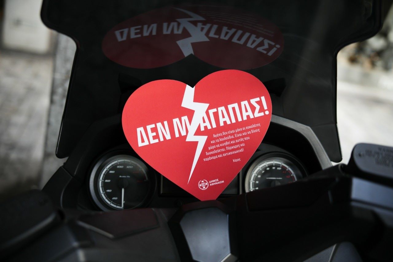 Κλιμάκια της Δημοτικής Αστυνομίας, μαζί με τον Δήμαρχο Αθηναίων, Χάρη Δούκα, μοίρασαν κλήσεις στους παραβάτες, αλλά και τη χαρακτηριστική ραγισμένη καρδιά, με μηνύματα όπως:
