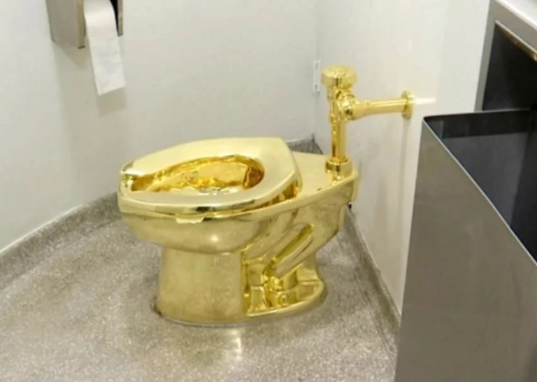 Το πολύτιμο αυτό αντικείμενο, έργο του Ιταλού καλλιτέχνη Μαουρίτσιο Κατελάν, είχε την ονομασία «Αμερική». Εκλάπη από το Ανάκτορο Μπλένεμ, την ιστορική κατοικία της οικογένειας Τσόρτσιλ στη νότια Αγγλία, η οποία αποτελεί δημοφιλή τουριστικό προορισμό και συγκαταλέγεται στα Μνημεία Παγκόσμιας Κληρονομιάς της UNESCO.