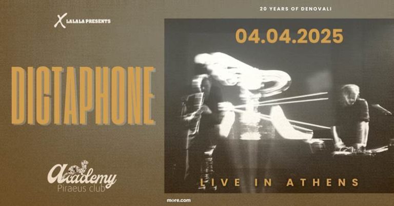 Για πρώτη φορά στην Αθήνα, οι Dictaphone θα παρουσιάσουν επί σκηνής κομμάτια εφ’ όλης της ύλης, δημιουργώντας μία ιδιαίτερη ατμόσφαιρα και παράγοντας ηχοτοπία από έγχορδα, πνευστά και electronics που συνδυάζουν με τον πιο μοναδικό και αντισυμβατικό τρόπο σε ζωντανές εκτελέσεις που αναδεικνύουν τον πειραματικό και πολυεπίπεδο ήχο τους.