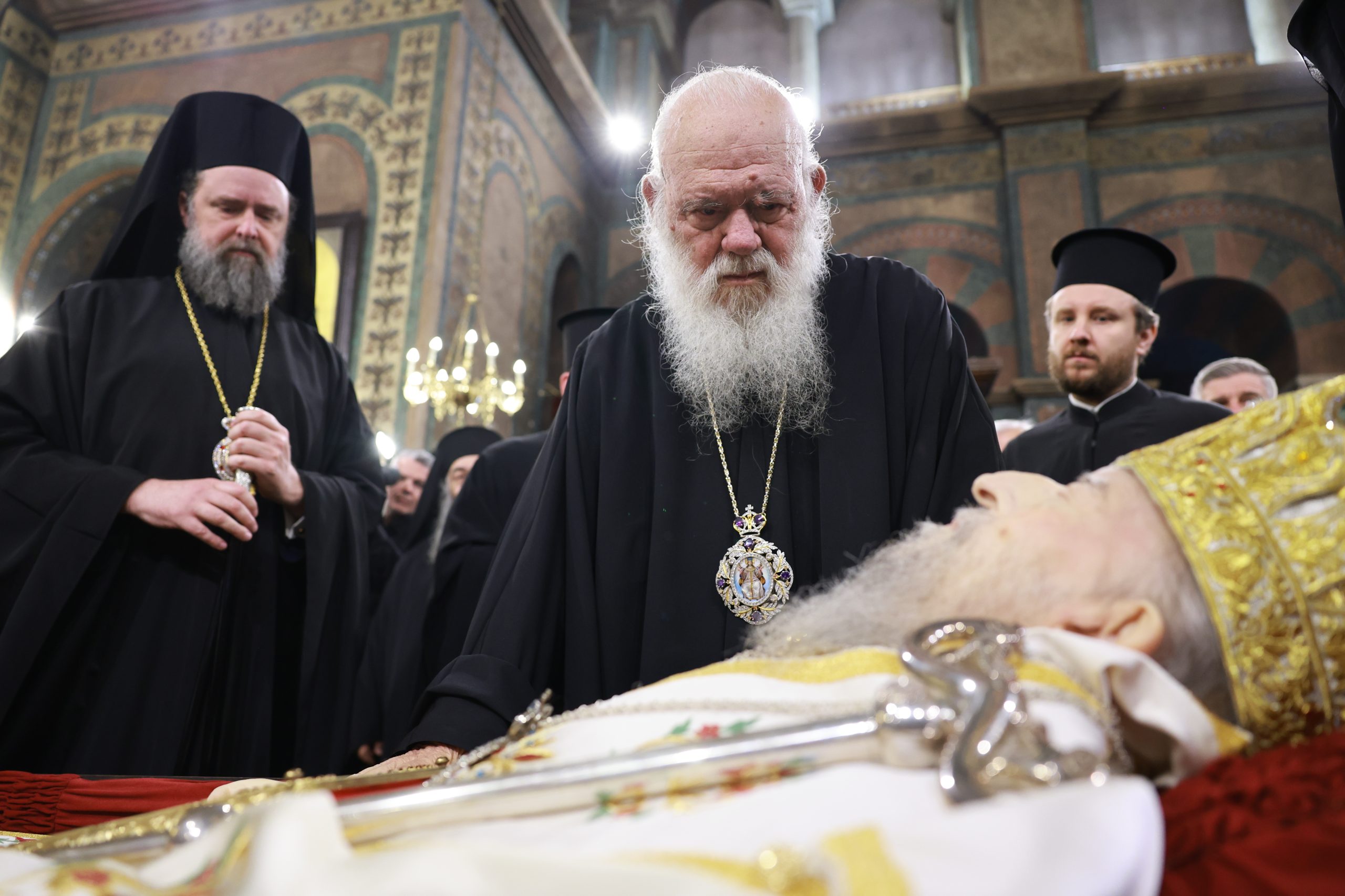 Στην εξόδιο Ακολουθία του αειμνήστου Ιεράρχου, τον Παναγιώτατο εκπροσωπεί ο Μητροπολίτης Βρυούλων κ. Παντελεήμων.
