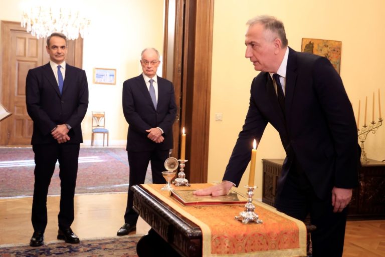 Παρουσία του Προέδρου της Δημοκρατίας, Κωνσταντίνου Τασούλα, και του πρωθυπουργού, Κυριάκου Μητσοτάκη, πραγματοποιήθηκε η ορκωμοσία του νέου υφυπουργού Ανάπτυξης, Σταύρου Καλαφάτη.
