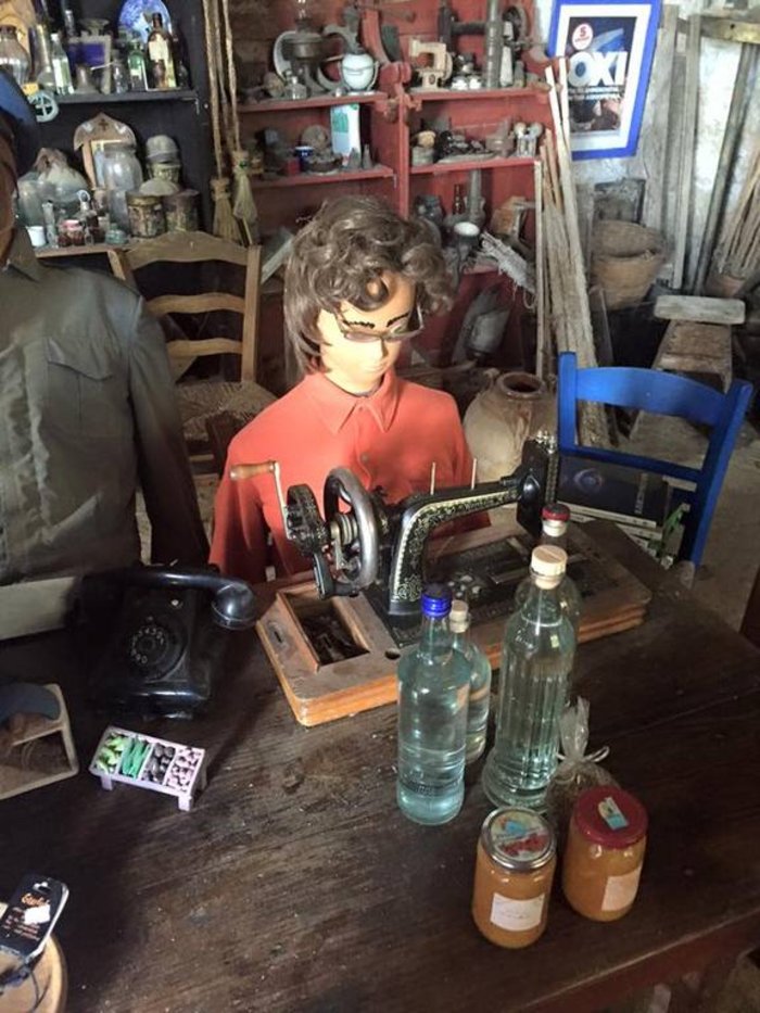 Ένα αρκετά περίεργο σπίτι, με το καφενείο- παντοπωλείο είναι το δημιούργημα μιας Γερμανιδας, η οποία ήρθε με τον άνδρα της ως τουρίστρια στην περιοχή και αγαπώντας την αποφάσισε να μείνει και να μετατρέψει ένα σπίτι, σε πραγματικό μουσείο, με κούκλες βιτρίνας, ντυμένες κανονικά και καθισμένες σε «ανθρώπινη» στάση. Το ζευγάρι μένει εκεί και φροντίζει να αλλάζει τις κούκλες σε ρούχα και στάσεις.