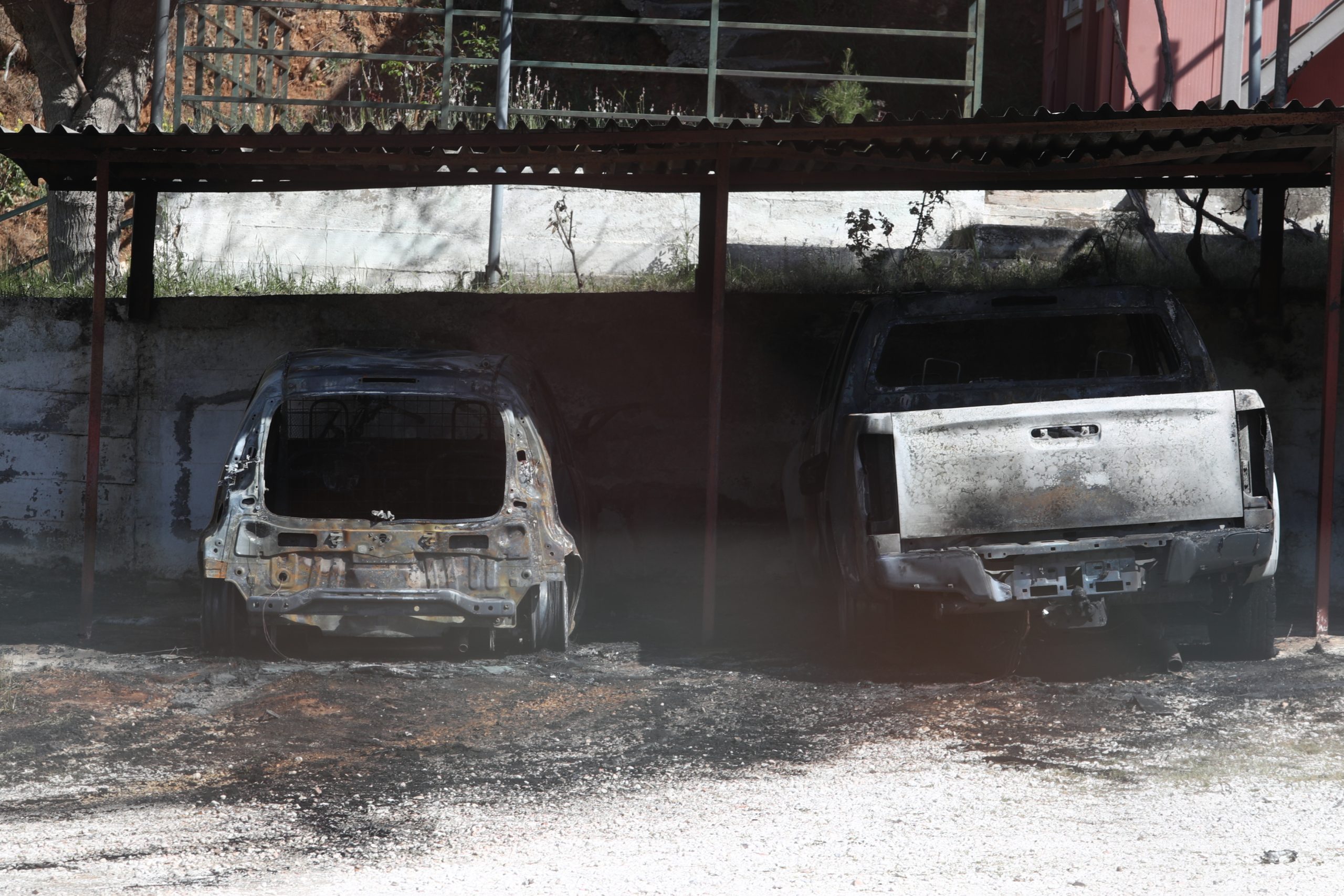 Ειδικότερα, σύμφωνα με τα μέχρι στιγμής στοιχεία, άγνωστοι περιέλουσαν με εύφλεκτο υγό και πυρπόλησαν δύο βαν, ένα φορτηγό, έναν εκσκαφέα, ένα αγροτικό φορτηγάκι και ένα ΙΧ αυτοκίνητο.