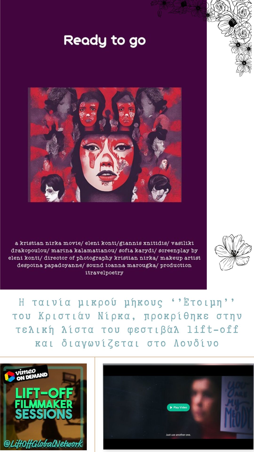 Η ταινία μικρού μήκους “Έτοιμη” του Κριστιάν Νίρκα, που επικεντρώνεται στο θέμα της έμφυλης βίας, προκρίθηκε στην τελική λίστα του φεστιβάλ Lift-Off και διαγωνίζεται στο Λονδίνο.