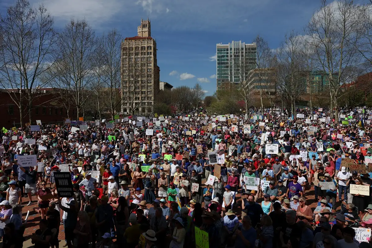 Χιλιάδες άνθρωποι ξεκίνησαν από τις μεσημεριανές ώρες, υπό βροχή, να συγκεντρώνονται γύρω από το Μνημείο της Ουάσινγκτον και διοργανωτές είπαν στο Reuters ότι περισσότεροι από 20.000 άνθρωποι αναμένεται να παρευρεθούν σε μια συγκέντρωση εκεί. Πολλοί κρατούσαν πλακάτ που έγραφαν συνθήματα όπως «Κάτω τα Χέρια από την Κοινωνική Ασφάλιση» ή «Ο φασισμός έφτασε», καθώς και αμερικανικές σημαίες με τα χρώματα ανάποδα – ένα ιστορικό σύμβολο ένδειξης πολιτικής διαμαρτυρίας.