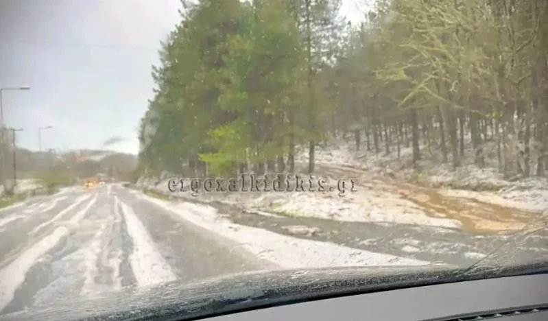 Ισχυρή χαλαζόπτωση σημειώθηκε σήμερα στη Βόρεια Χαλκιδική.