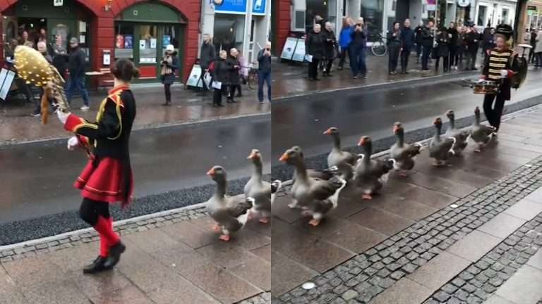 Μια παρέλαση που πραγματοποιείται στο πλαίσιο ενός 10ήμερου φεστιβάλ, όπου 14 χήνες κάνουν πορεία γύρω από την πόλη με τη δική τους μπάντα. - Δανία