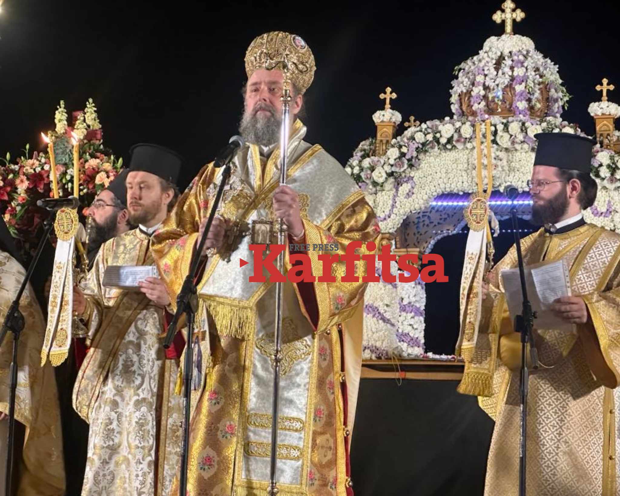 Εκεί έψαλλαν ιερείς και ψάλτες ενώ γυναίκες ντυμένες στα μωβ έραιναν με ροδοπέταλα τους επιτάφιους.