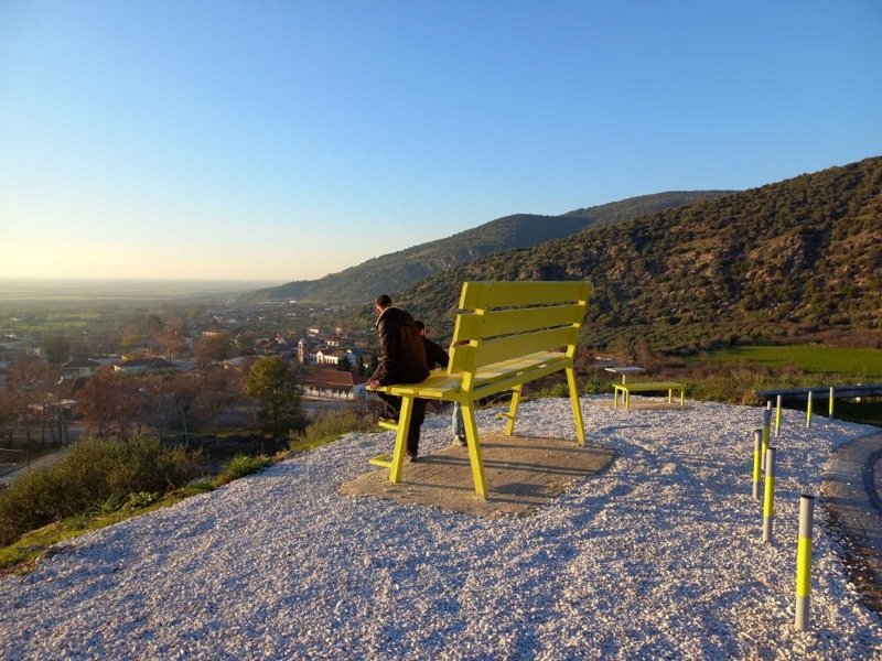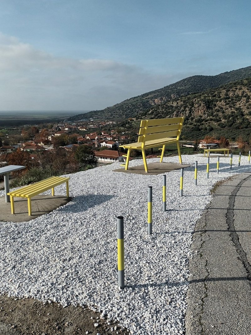 Στην τοποθεσία Καλαμάκι του δήμου Κιλελέρ στήθηκε ένα εντυπωσιακό, ψηλό και κατακίτρινο παγκάκι διαφορετικό από τα συνηθισμένα, αφού από το σημείο του βλέπει κανείς ολόκληρο το Θεσσαλικό κάμπο να «απλώνεται» στα μάτια του.