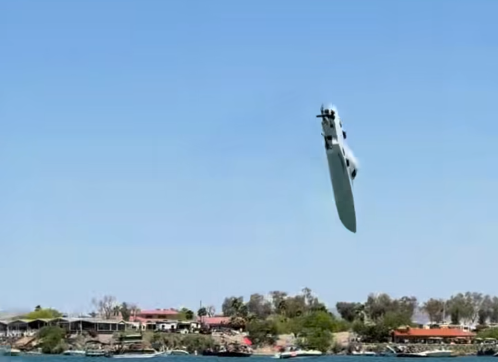 Το σκάφος διακρίνεται να εκτοξεύεται, να περιστρέφεται στον αέρα και τελικά να προσγειώνεται στο νερό σε μεγάλη απόσταση από το σημείο της εκκίνησης