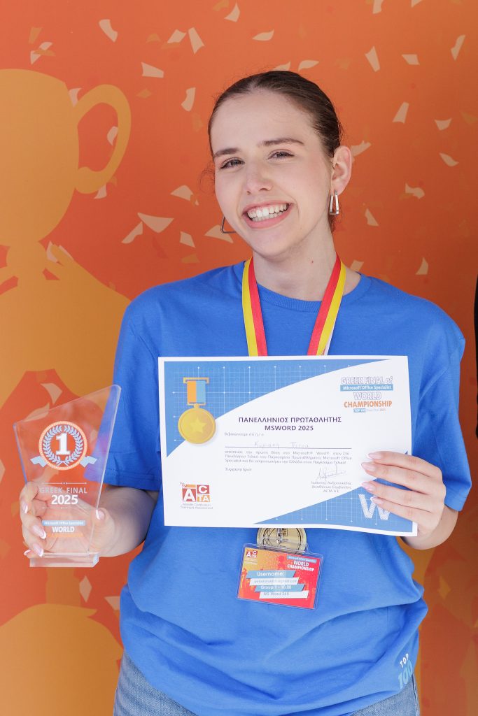 Να σημειωθεί πως το Παγκόσμιο Πρωτάθλημα Microsoft Office Specialist είναι ένας παγκόσμιος διαγωνισμός που διεξάγεται για 24η συνεχή χρονιά στις ΗΠΑ και αξιολογεί τις δεξιότητες των μαθητών σε εφαρμογές όπως το Word, το Excel και το PowerPoint. Δυνατότητα συμμετοχής έχουν άτομα ηλικίας 13 έως 22 ετών από 140 χώρες του κόσμου.