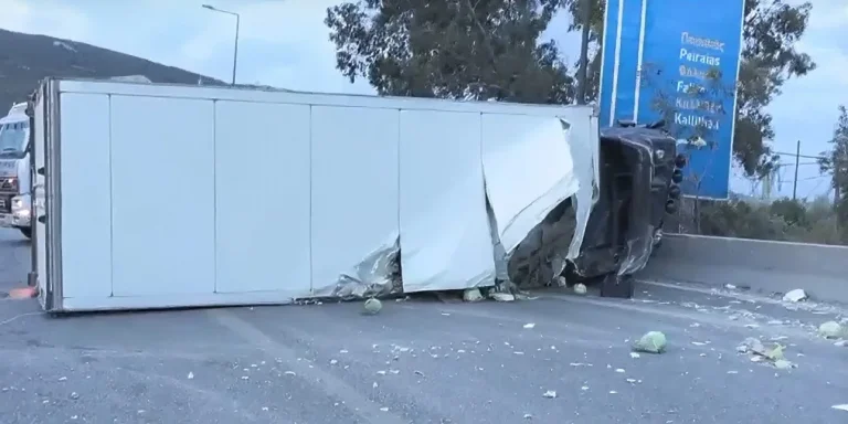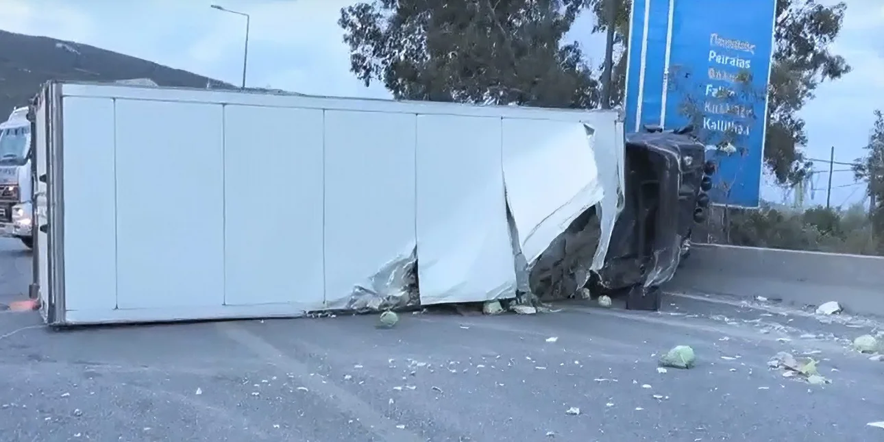 Νταλίκα ανατράπηκε τα ξημερώματα της Τετάρτης στη Λεωφόρο Αθηνών με αποτέλεσμα να