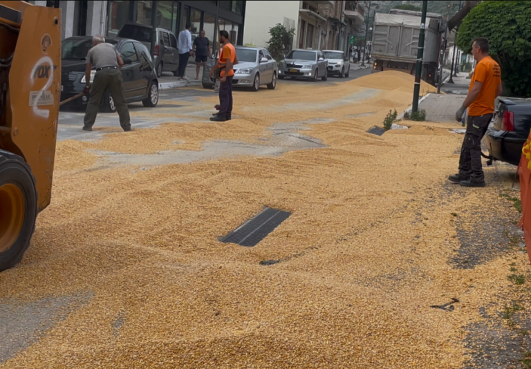 Μια ιδιαίτερα ασυνήθιστη εικόνα αντίκρισαν σήμερα το πρωί περαστικοί και οδηγοί έξω από το Κέντρο Υγείας Αμφιλοχίας, όταν μεγάλες ποσότητες καλαμποκιού σκορπίστηκαν στον δρόμο από ένα διερχόμενο φορτηγό, προκαλώντας προσωρινή αναστάτωση και κινητικότητα στις τοπικές υπηρεσίες.
