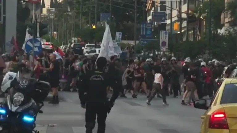 Με μεγάλη συμμετοχή, αλλά και μια μικρή ένταση με μολότοφ στο τέλος της, πραγματοποιήθηκε η πορεία υπέρ της Παλαιστίνης για τις τελευταίες εξελίξεις με το πλοίο Madleen που προσέγγιζε τη Γάζα.
