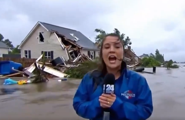 Σε άλλο παρόμοιο βίντεο, η «δημοσιογράφος» Angela Carter εμφανίζεται δήθεν σε περιοχή που πλήττεται από πλημμύρες. Στην αρχή δίνει ρεπορτάζ, για να αποκαλύψει στη συνέχεια: «Αστειεύομαι, δεν είμαι αληθινή.»