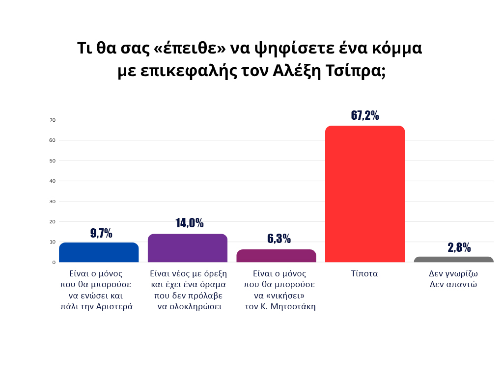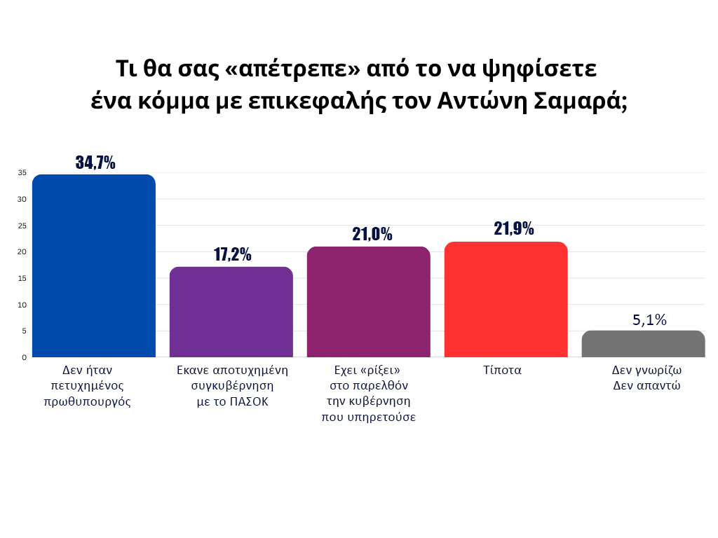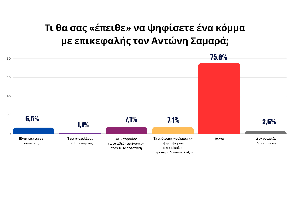 των τριών, ενώ στο ερώτημα «τι θα σας έπειθε να ψηφίσετε ένα κόμμα με επικεφαλής τον Αντώνη Σαμαρά, τον