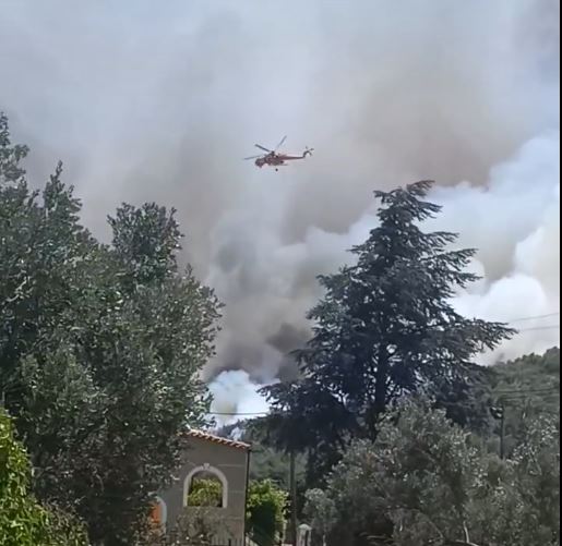 Σύμφωνα με την Πυροσβεστική η φωτιά εκδηλώθηκε γύρω στις 13:30 και την “έπιασε”το drone της πυροσβεστικής