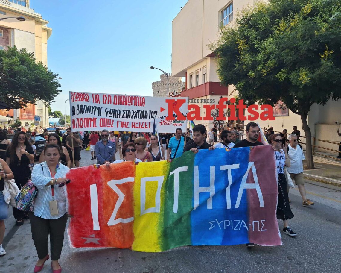 «Σήμερα βρισκόμαστε εδώ στην παρέλαση υπερηφάνειας στη Θεσσαλονίκη για έναν πολύ συγκεκριμένο λόγο. Ούτε βήμα πίσω σε έναν κόσμο που αλλάζει και τα ανθρώπινα δικαιώματα καταστρατηγούνται. Ως ΠΑΣΟΚ είμαστε εδώ και δηλώνουμε ότι δεν κάνουμε ούτε βήμα πίσω στα ανθρώπινα δικαιώματα».