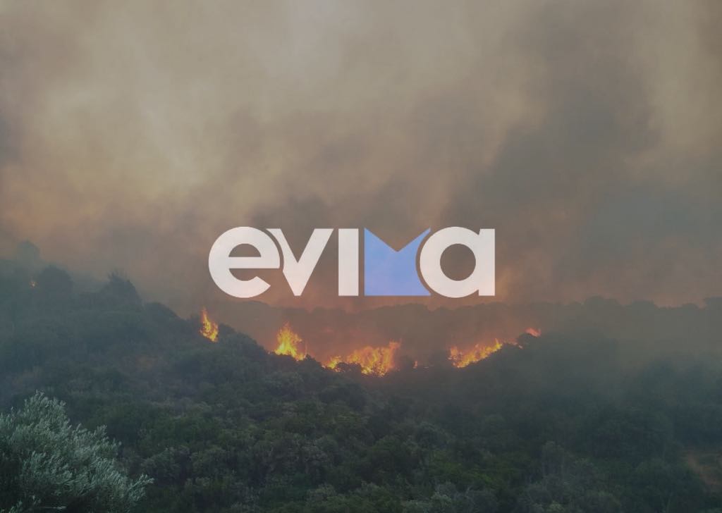 Σε εξέλιξη βρίσκεται μεγάλη φωτιά που ξέσπασε τα ξημερώματα της Κυριακής στους Τσακαίους στη νότια Εύβοια.