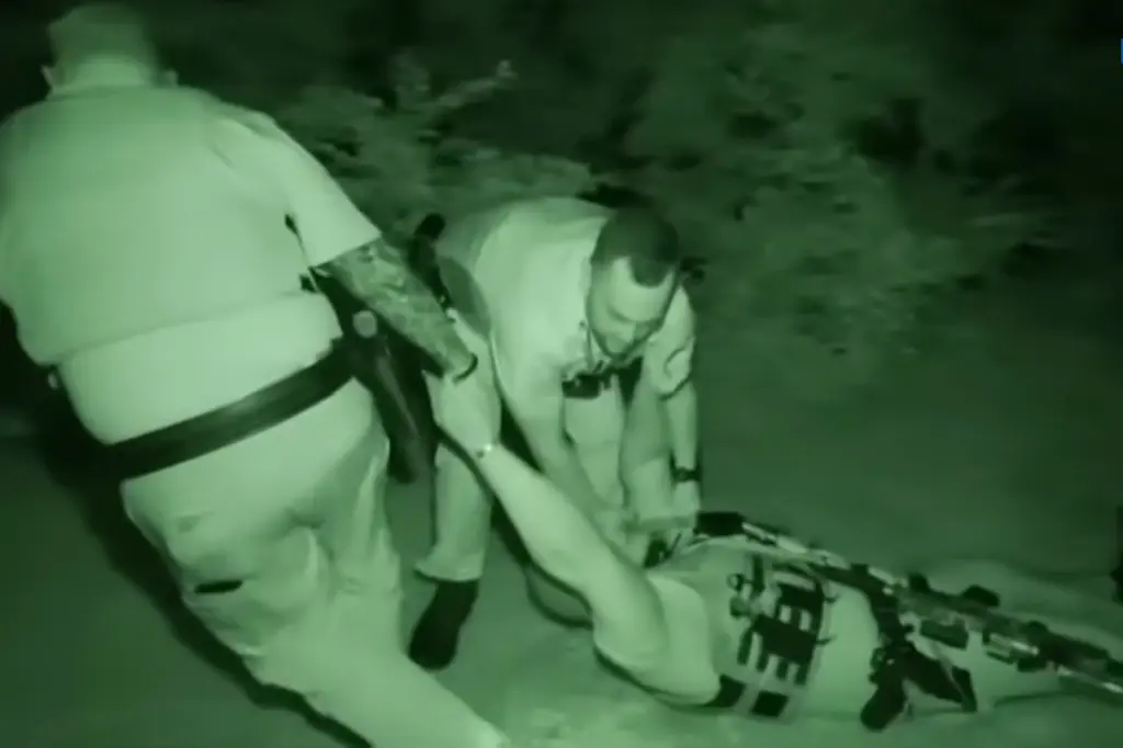 Στα πλάνα διακρίνεται ο αστυνομικός Dalton Swanger να μπαίνει στο δάσος για να δει κάτι πίσω από ένα δέντρο και τότε δέχεται μια αιφνιδιαστική επίθεση από τον 44χρονο, ο οποίος τον σώριασε στο έδαφος, εφόσον τού πέταξε ένα τούβλο στο κεφάλι.