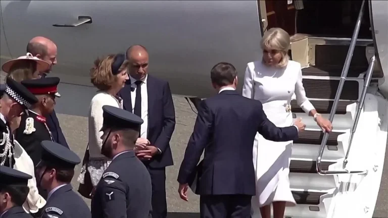 Συγκεκριμένα ο πρόεδρος της Γαλλίας φαίνεται πως προσπεράστηκε από τη σύζυγό του. όταν της προσέφερε το χέρι του για να τη βοηθήσει να κατέβει από το αεροπλάνο κατά την άφιξή τους στη Βρετανία για την τριήμερη κρατική τους επίσκεψη.