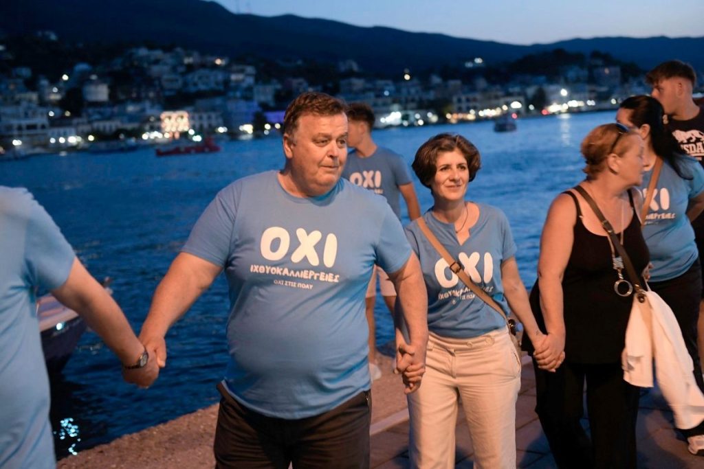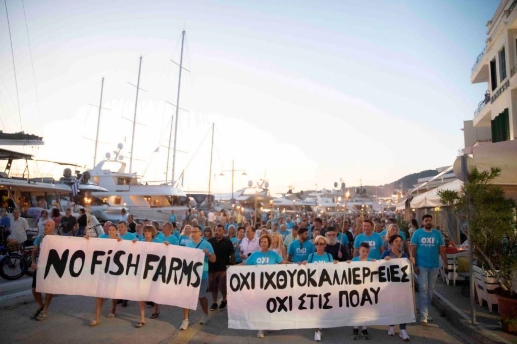 Οι κάτοικοι του Πόρου με κινητοποιήσεις τους αντιδρούν έντονα στη λειτουργία μονάδων ιχθυοκαλλιέργειας με μπροστάρη τον δήμαρχο, Γιώργο Κουτουζή (κάτω)