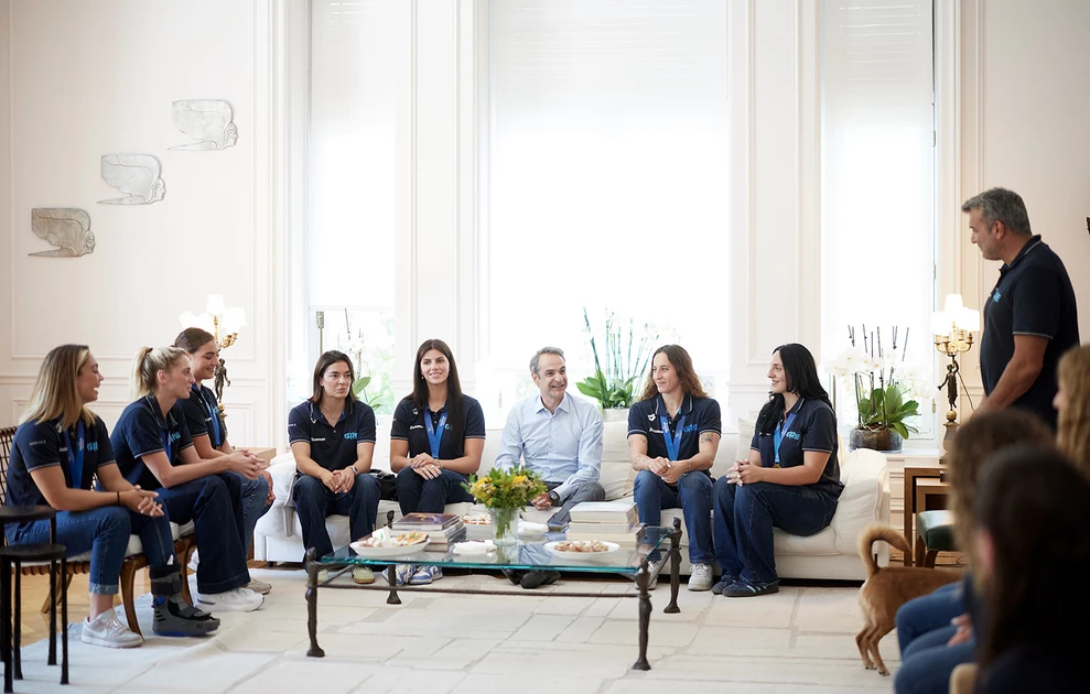 Ο Κυριάκος Μητσοτάκης και η σύζυγός του Μαρέβα Γκραμπόφσκι – Μητσοτάκη υποδέχτηκαν σήμερα (25/7) στο Μέγαρο Μαξίμου την εθνική ομάδα πόλο γυναικών, η οποία πριν λίγες ημέρες κατέκτησε το χρυσό μετάλλιο στο Παγκόσμιο Πρωτάθλημα στη Σιγκαπούρη.