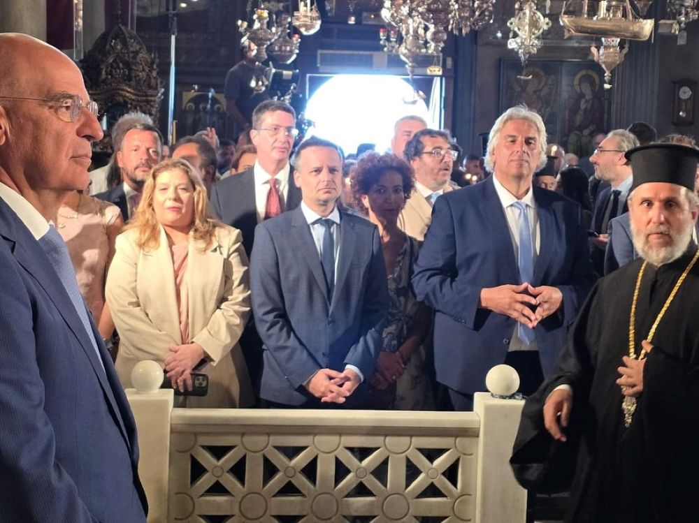 Στην Τήνο βρέθηκε σήμερα, Παρασκευή (15/8), ο Δήμαρχος Αθηναίων, Χάρης Δούκας, για τους εορτασμούς της Κοιμήσεως της Θεοτόκου και τις τελετές για την 85η επέτειο του τορπιλισμού του Κ/Δ «ΕΛΛΗ».