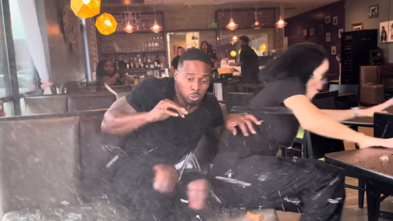 Η Νίνα Σαντιάγκο και ο Πάτρικ Μπλάκγουντ απολάμβαναν το γεύμα τους σε εστιατόριο του Χιούστον στο Τέξας, με σάντουιτς σολομού, στρείδια και αστακό, όταν το SUV έσπασε το παράθυρο και έπεσε πάνω στο τραπέζι τους. Οι influencers εκτοξεύτηκαν από τις θέσεις τους και έτρεξαν να ξεφύγουν, ενώ γυαλιά έπεφταν γύρω τους.