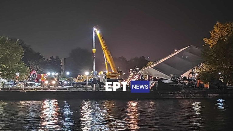 Το στέγαστρο κατέρρευσε λίγο πριν την συναυλία με την Άννα Βίσση, τον Αντώνη Ρέμο και τις Μέλισσες, στην πλατεία Μαβίλη των Ιωαννίνων εξαιτίας του δυνατού αέρα.