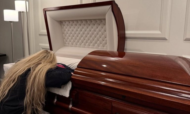 Η χήρα του ακτιβιστή, σε ανάρτησή της φαίνεται να χαϊδεύει απαλά το χέρι του συζύγου της και να κάθεται δίπλα στο σώμα του, το οποίο βρίσκεται μέσα σε ένα γυαλιστερό ξύλινο φέρετρο, ντυμένο με σκούρο κοστούμι και κόκκινη γραβάτα.