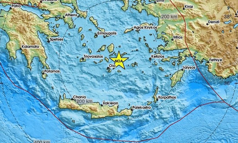 Ο σεισμός είχε επίκεντρο 14χλμ. νότια-νοτιοδυτικά της Αρκεσίνης Αμοργού και το εστιακό βάθος του υπολογίστηκε στα 10,8χλμ.