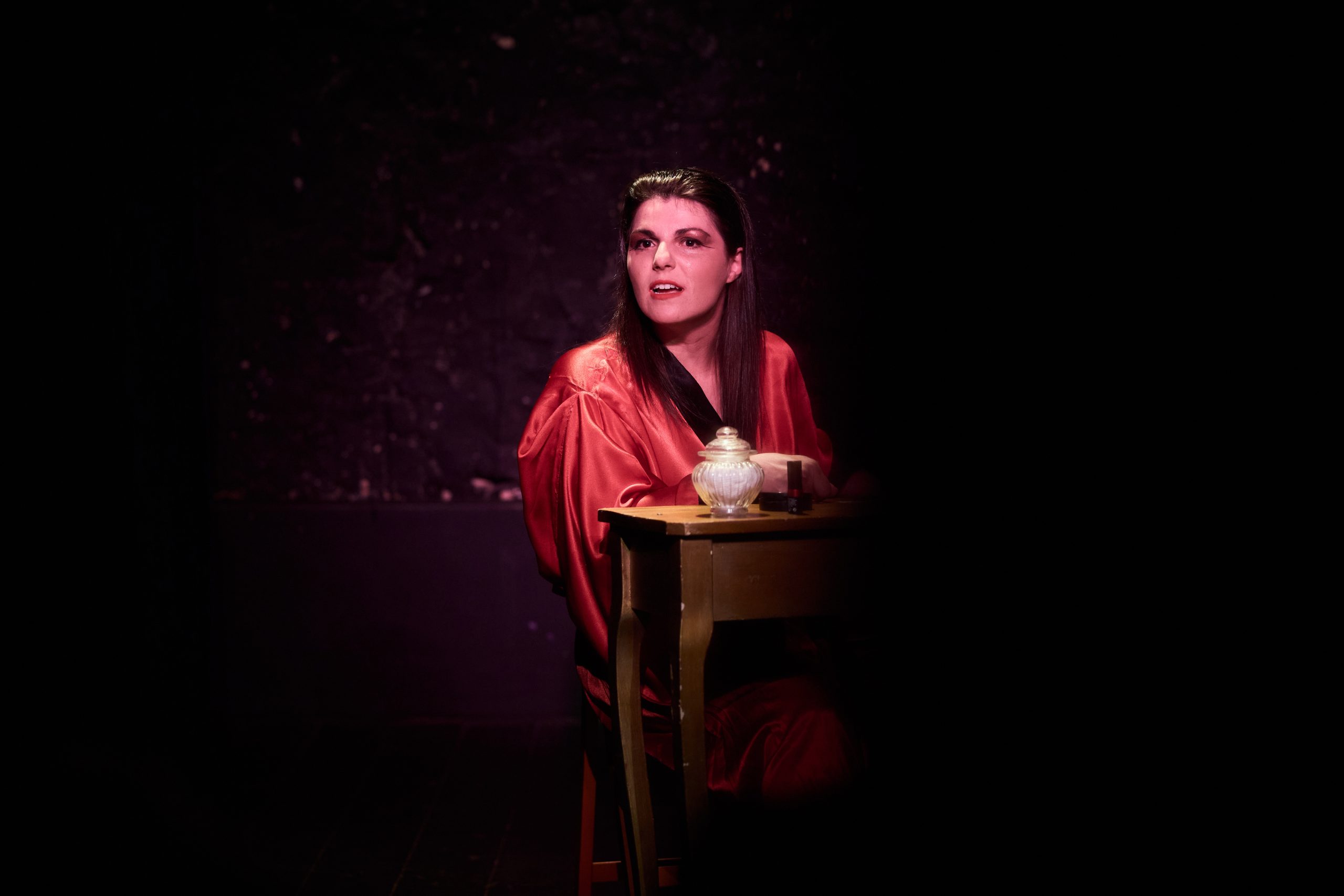 Μέσα από λόγια που τρέμουν σαν φλόγα, η Μαντάμ Ρόζα αφηγείται όσα κρύβουν οι βαριές κουρτίνες. Όσα δεν ειπώθηκαν ποτέ. Ένα κρυφό μυστικό που την ακολουθεί. Μνήμες πληρωμένου έρωτα, χέρια που πόνεσαν, βλέμματα που πλήγωσαν, στιγμές που καίνε.