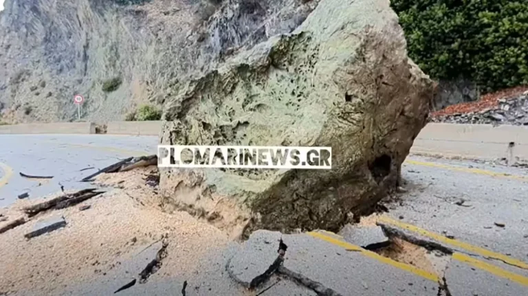 Σύμφωνα με την ΕΡΤ, τεράστιος βράχος — βάρους περίπου 40 τόνων — αποκολλήθηκε από το βουνό και κατέληξε στο οδόστρωμα, προκαλώντας εκτεταμένες ζημιές: δημιούργησε κρατήρα 1,5 μέτρου και παρέσυρε το παρακείμενο προστατευτικό τοιχίο. Η κυκλοφορία στο σημείο είναι πλέον αδύνατη.